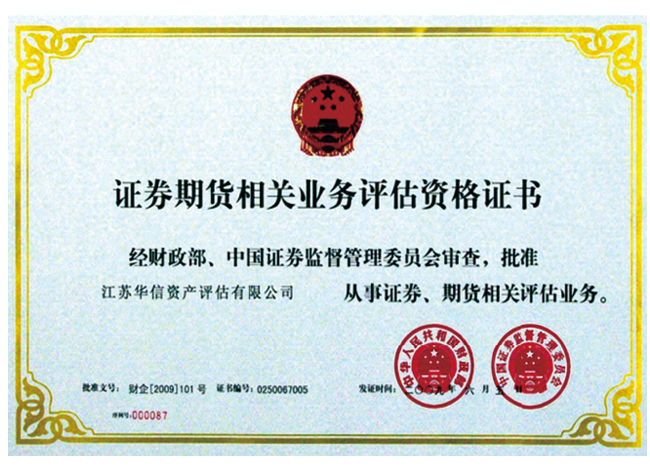 - 證券期貨相關(guān)業(yè)務(wù)評估資格證書