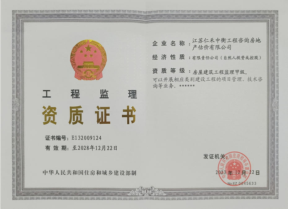 - 房屋建筑監(jiān)理甲級證書